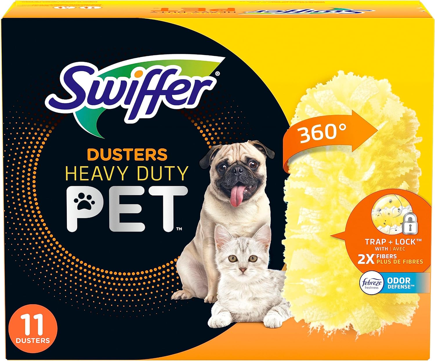 Swiffer Pet Heavy Duty Dusters Refills, Multisurface 360 Dusters with Febreze Odor Defense, 11 Count